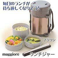 時間がたっても冷めにくい!真空二重構造のランチボックス。マジョーレ ランチジャー F-2458 ブラウン 価格: 2,860円 レビュー評価:0.0 レビュー数:0 毎日のランチにピッタリ!ホットな気分になれる真空二重構造のご飯入れが付いたお弁当箱セットです。ご飯におかず、スープ容器までついたセットです。アツアツを召し上がれ。サイズ幅130×奥行147×高さ220mm重量1,050g素材・材質本体(内・外):ステンレス鋼本体(蓋・樹脂):ポリプロピレンごはん容器(本体・蓋):ポリプロピレンおかず容器(本体・蓋):ポリプロピレン箸:ポリスチレン箸ケース:ABS樹脂セット内容ごはん容器(容量:750ml)×1、おかず容器(容量:430ml)×1、スープ容器(容量:350ml)×1、箸、箸箱、取扱説明書製造国中国<通常発送日までの目安>ご注文後3?4日後の出荷と Supported by 楽天ウェブサービス |